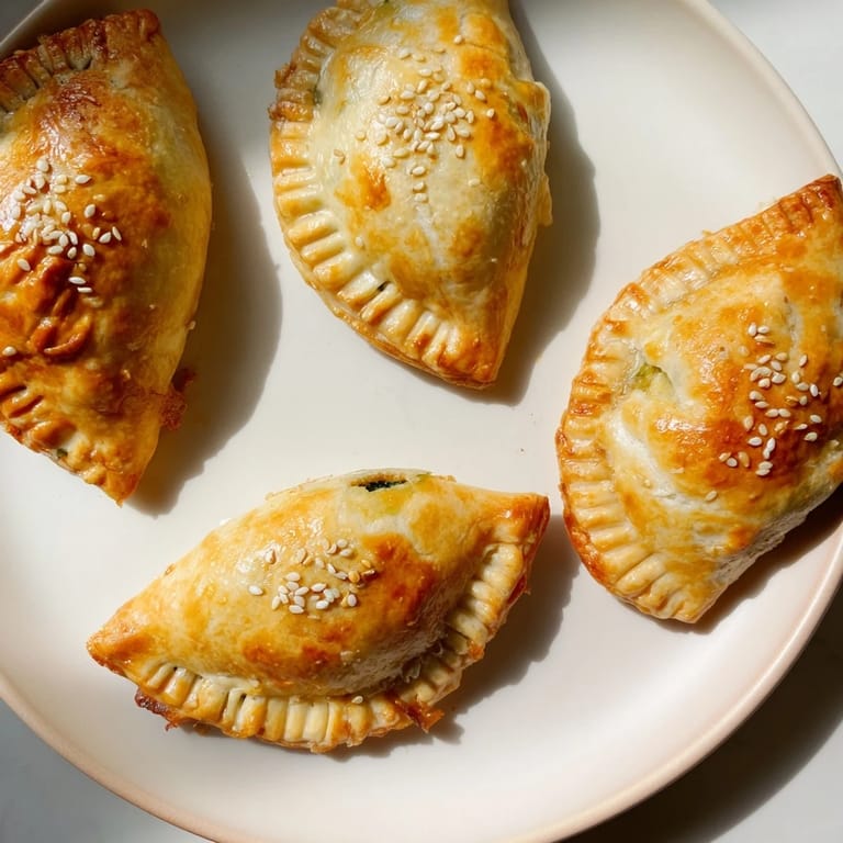 - Place pies on baking sheet. Brush tops with milk and sprinkle sesame seeds if using. Cut a small slit for steam. Bake 20-25 minutes until golden and crisp.