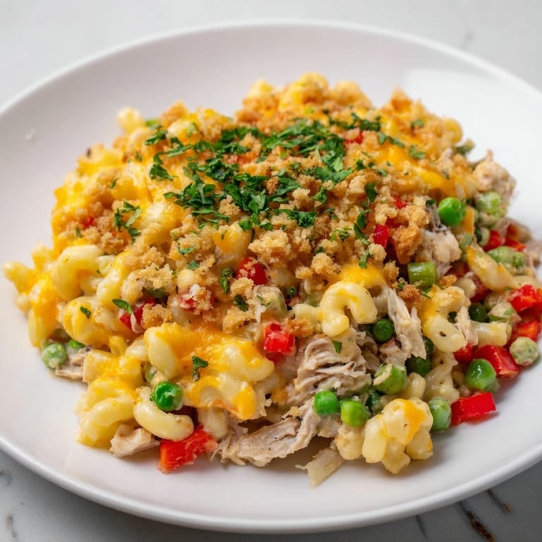 Save My grandmother used to make this chicken macaroni whenever we'd visit on Sunday afternoons, and honestly, I think she invented it just to get us grandkids to actually eat our vegetables without complaining. The first time I tried making it myself, I burnt the roux and had to start over, but that disaster taught me more than any perfect batch ever could. There's something about the way the cheese sauce clings to every piece of pasta, how the hard-boiled eggs add these little pockets of richness, that makes this dish feel both humble and somehow special at the same time.