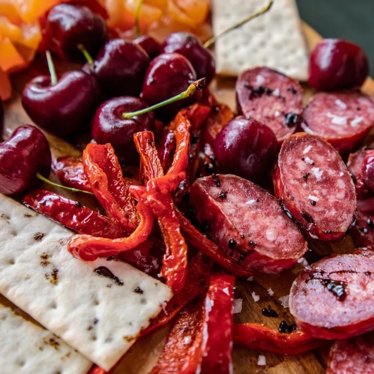 Save I discovered The Crimson Tide at a dinner party where someone had arranged chorizo and cherries on crackers in the most unexpected way, and it stopped me mid-conversation. The S-curve design looked like edible art, but it was the contrast between spicy meat and sweet fruit that made me ask for the recipe. That night, I went home and played with the proportions until it became something I actually wanted to make again and again.