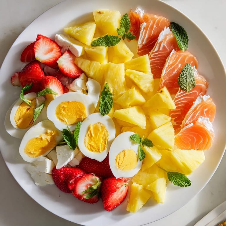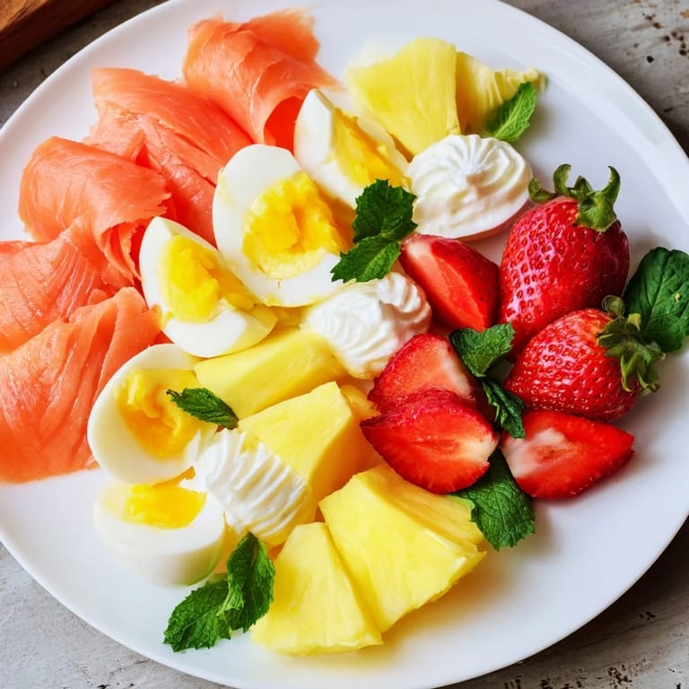 - Proteins: 4 boiled eggs halved, 100 g smoked salmon (optional omit for vegetarian)