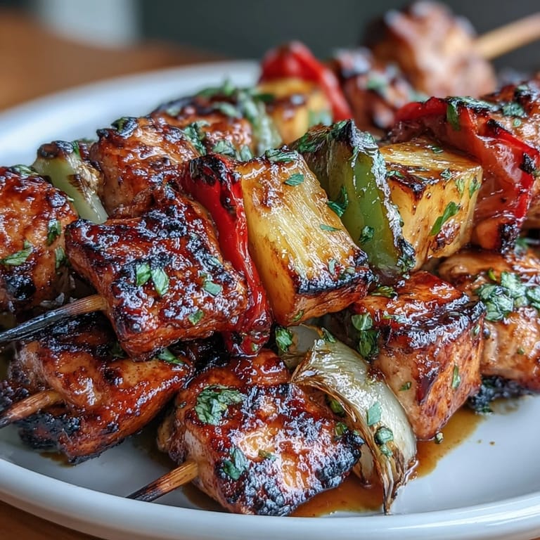 Save My neighbor challenged me to bring something to a Fourth of July cookout that wasn't just the usual burgers and hot dogs, and these kabobs became my quiet victory that afternoon. There's something about threading fruit and vegetables onto skewers that makes cooking feel less like a chore and more like assembly—purposeful, almost meditative. The marinade came together in minutes, filling the kitchen with lime and garlic while the chicken soaked up flavor in the fridge. When those skewers hit the grill and started to char, the smell of caramelizing pineapple mixed with smoke made everyone stop and notice.