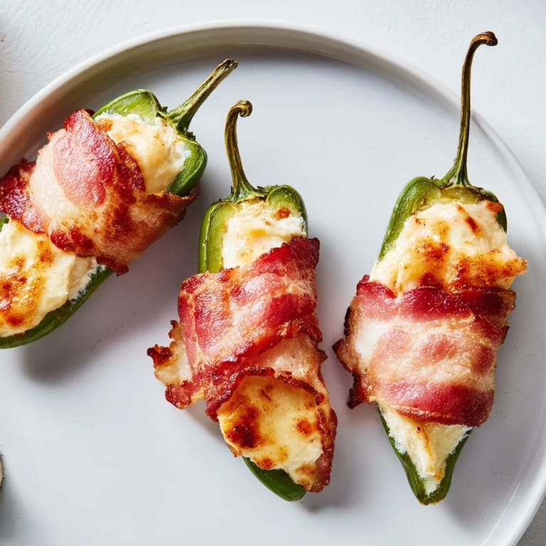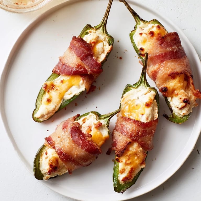 Save A festive, spicy appetizer featuring jalapeños stuffed with creamy cheese wrapped in crispy bacon&perfect for holiday gatherings.