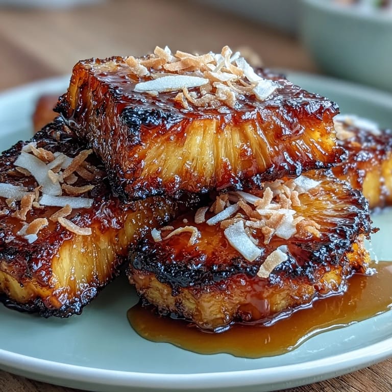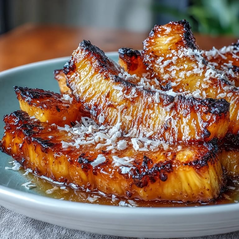Save There's a particular magic that happens when you catch pineapple at exactly the right moment in the oven, when the edges turn amber and the whole kitchen smells like a vacation you're actually taking instead of just dreaming about. I stumbled onto this recipe after a farmers market haul left me with a gorgeous pineapple and absolutely no plans, but somehow those minutes under high heat transformed something simple into something that tastes like you spent real effort on it. The honey and lime work together in a way that feels almost effortless once you've tasted it, and the toasted coconut is what makes people pause mid-bite and ask what you did differently.