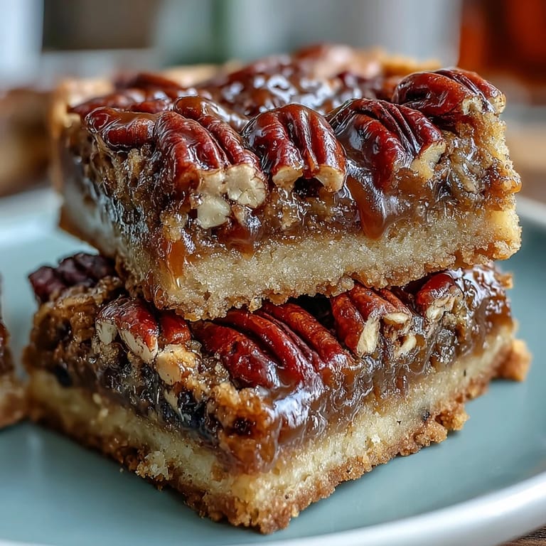 I made these for a book club meeting last spring, nervous because pecan pie can be temperamental, and I wanted to impress people who'd tasted every Southern dessert imaginable. The bars came out with this perfect golden dome, slightly jiggly in the center but set enough to cut cleanly, and someone actually closed their eyes while eating one. That moment of watching someone experience something you created—that's when dessert stops being about sugar and butter and becomes about connection.