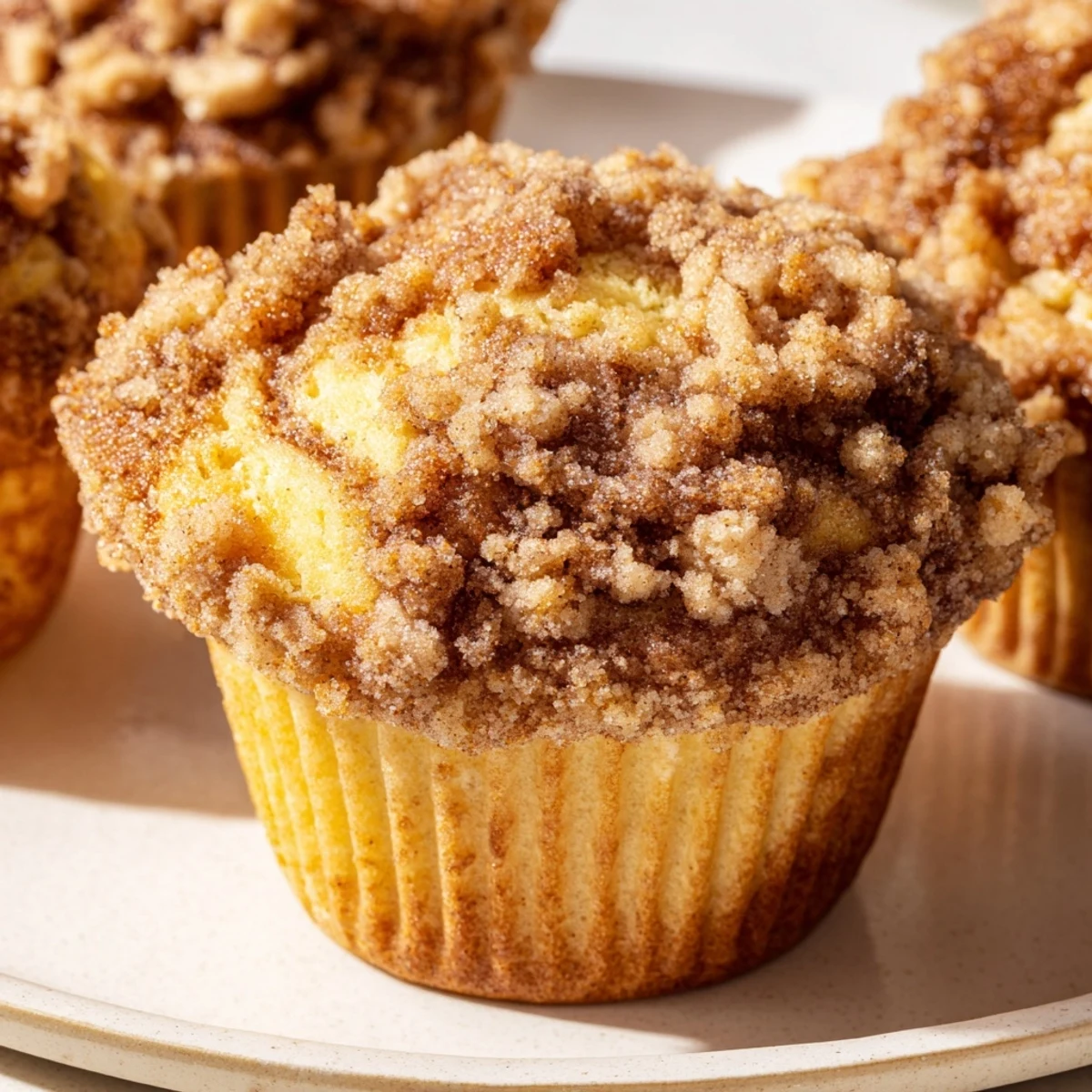 Save Tender, festive muffins swirled with cinnamon and topped with a crunchy streusel—lighter in calories but full of holiday flavor.