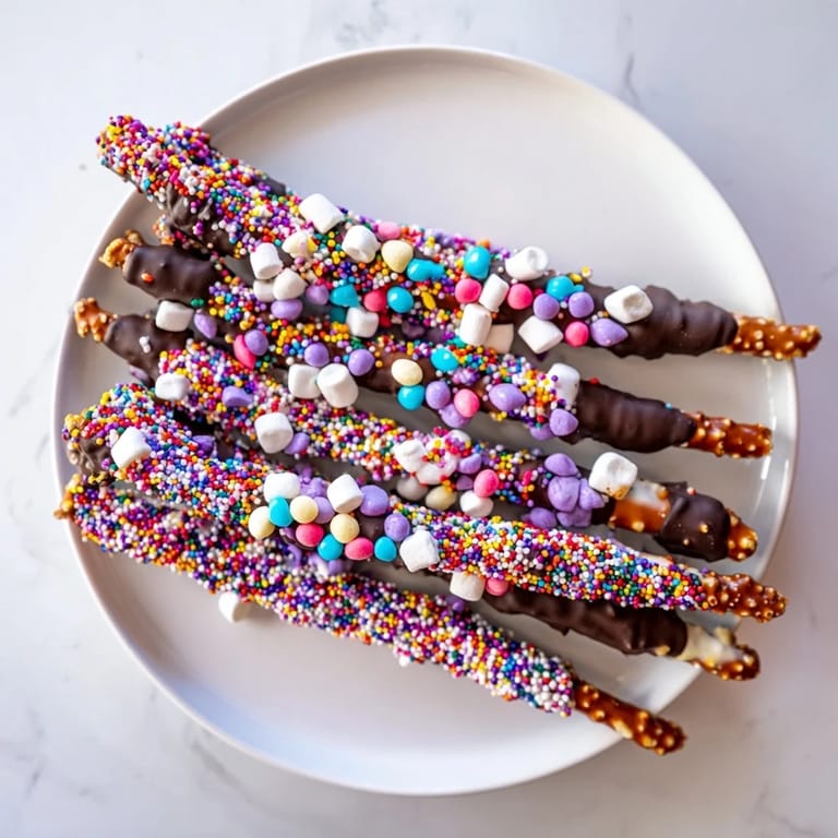 - 3. While the chocolate is still wet, roll each dipped rod in rainbow sprinkles, mini marshmallows, or candy-coated chocolates as desired.