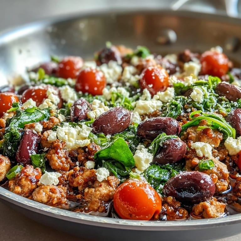 I made this for a friend who claimed she didnt like ground chicken, insisting it was too bland. She took one bite, paused, then asked for the recipe before she even finished her plate. The secret isnt just the chicken, its the way the Mediterranean flavors build on each other: the garlic perfumes the oil, the tomatoes release their sweetness, the olives add salt and depth, and the feta melts just enough to tie it all together. Now she makes it for her own weeknight dinners and texts me photos every time.