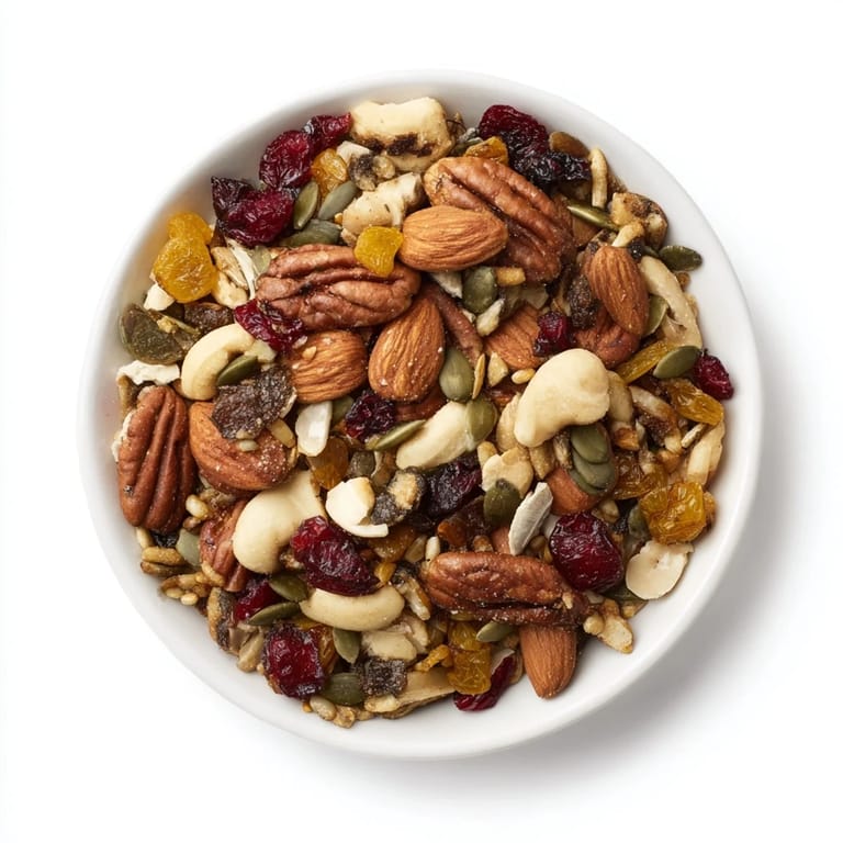 Save A crunchy, wholesome snack mix featuring roasted nuts, seeds, dried fruits, and a hint of spice—perfect for an energy boost or sharing at gatherings.