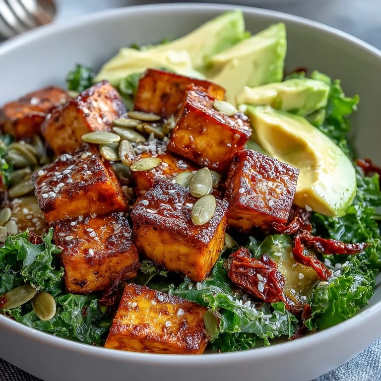 Save Start your morning with a burst of vibrant flavors and wholesome nutrition. This Tofu Breakfast Bowl combines the heartiness of golden-spiced tofu with the earthiness of sautéed kale and the creamy richness of ripe avocado. It's a protein-packed powerhouse that will fuel your day while delighting your taste buds with its colorful presentation and varied textures.