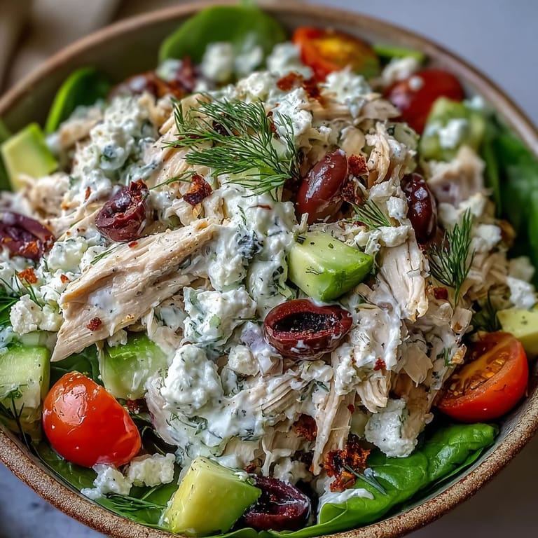Save My neighbor showed up one July afternoon with a container of this salad, still cold from her fridge. She'd made too much for her book club and thought I might want some. One bite and I was texting her for the recipe before she even made it back across the yard. The cool tzatziki clung to every shred of chicken, and the cucumbers added this perfect watery crunch that made the whole thing feel like summer in a bowl.
